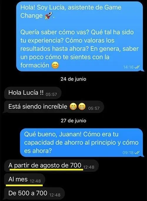 Aquí abajo te dejo algunos de los testimonios y casos de éxito de la formación Game Change: