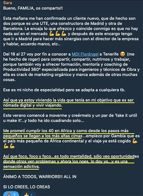 - El soporte es muy bueno ya que tienes vía email, en las reuniones de la formación o a través de la comunidad de Telegram.